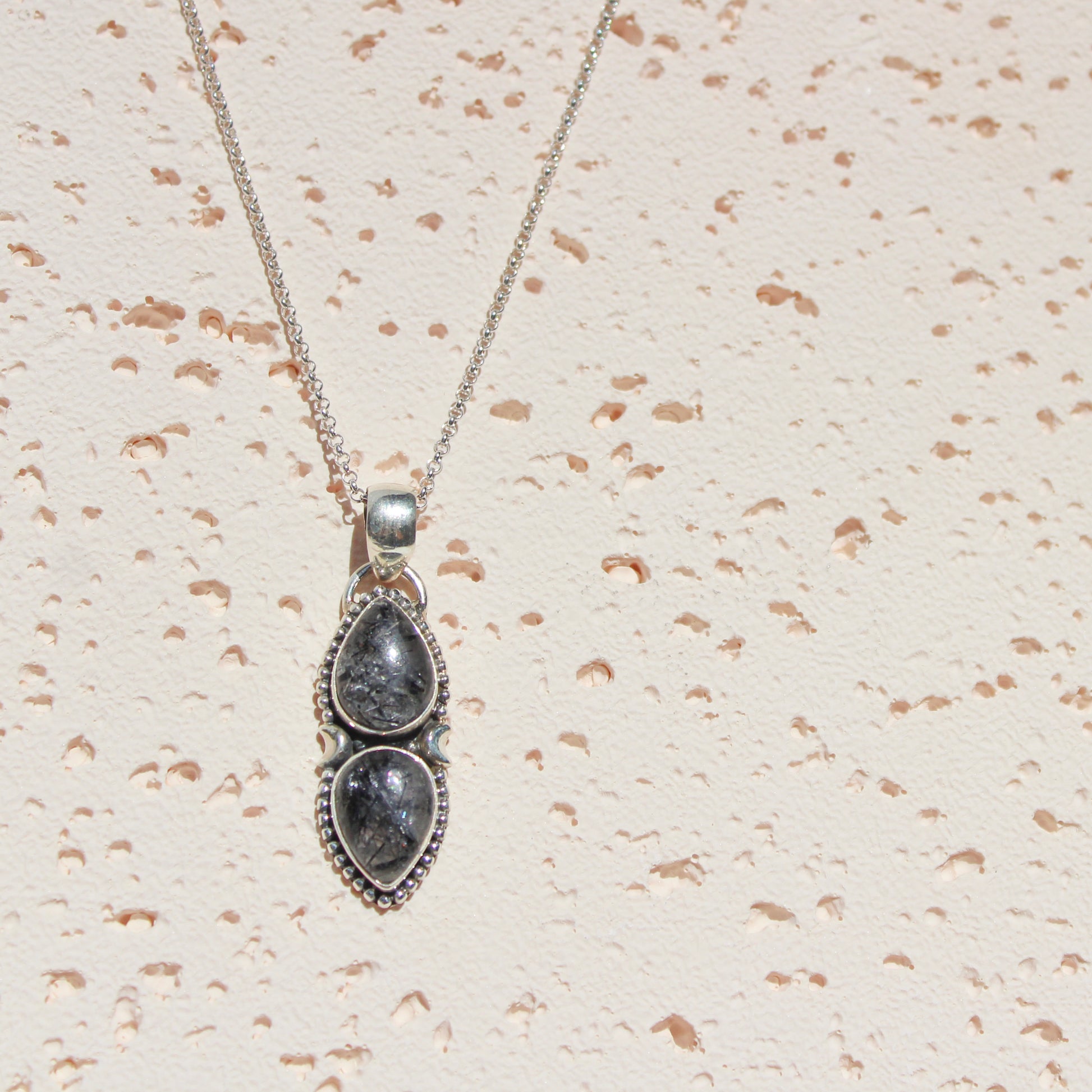 Add a touch of magic to your outfit with our Rutile Quartz Necklace. Featuring a unique pendant design with 2 tear drop rutile quartz, suspended on a 60cm long sterling silver chain.